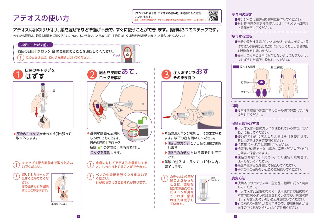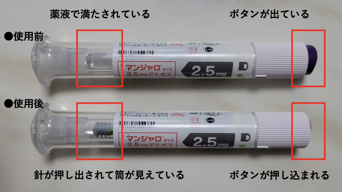 ただし、薬液窓に液が大量に残っている場合は注射が途中で止まった可能性があります。その場合は同じアテオスで再注射せず、医師に相談してください。